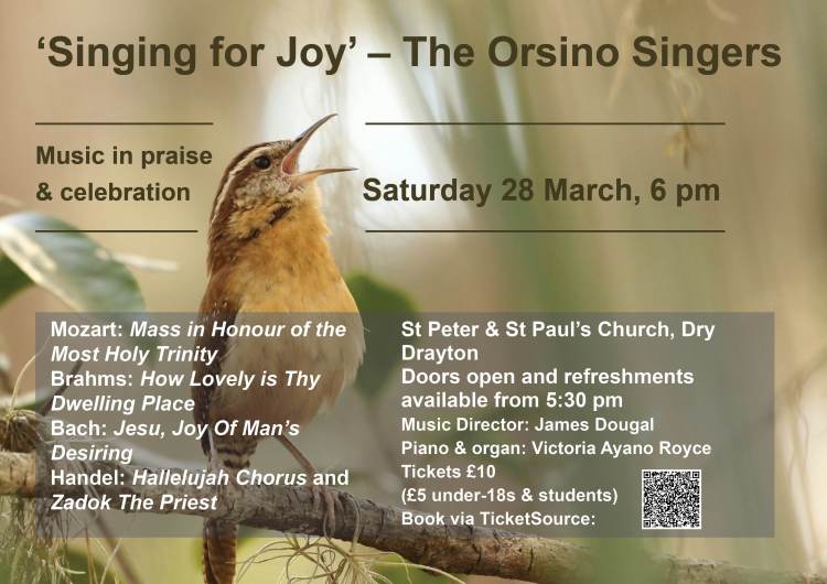 ‘Singing for Joy’ – our Spring Concert of music by German & Austrian composers – takes place on Saturday 28 March 2026 at St Peter & St Paul’s Church, Dry Drayton.